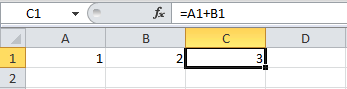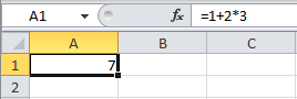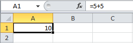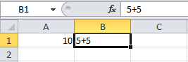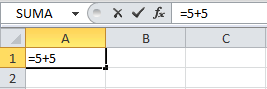 Nunca debemos olvidar introducir el símbolo igual al inicio de una fórmula de lo contrario Excel tratará el texto introducido como si fuera cualquier otro texto. Observa lo que sucede en la celda B1 al no especificar el signo igual al inicio del texto: