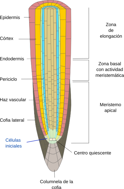 EMBRIÓN Estructura formada por meristemos que se origina de mitosis del cigoto Embriogénesis: Proceso dependiente de hormonas que consiste en el desarrollo de meristemos y órganos funcionales, es decir, se forma el embrión. Se da en el arquegonio. MODELOS DE DIVISIÓN CIGÓTICA 1er división celular: célula EPIBASAL e HIPOBASAL CÉLULA EPIBASAL: forma meristemo apical caulinar, meristemo apical foliar y la parte aérea. CÉLULA HIPOBASAL: forma meristemo apical radicular y pie. MODELO EXOSCÓPICO: 1er división transversal al eje longitudinal del arquegonio. Epibasal arriba e Hipobasal al fondo del arquegonio. MODELO ENDOSCÓPICO SIN SUSPENSOR: 1er división transversal al eje longitudinal del arquegonio. Hipobasal arriba y Epibasal al fondo del arquegonio. MODELO ENDOSCÓPICO CON SUSPENSOR: 1er división se obtiene suspensor y célula embriónica. La célula embriónica sufre la 2da. división y da origen a las células epi e hipobasal. Hipobasal arriba y Epibasal al fondo del arquegonio. MODELO PRONO: 1er división paralela al eje longitudinal del arquegonio. En extremo izquierdo que la célula epibasal y en el derecho la hipobasal. Estas sufren una 2da. división que diferencía al meristemo de la hoja y células del tallo del lado izq. y a los meristemos de raíz y del pie del lado derecho. TEJIDOS Un tejido es un grupo organizado de células asociadas íntimamente que tienen el mismo origen, estructura y función Los hay MERISTEMÁTICOS y MADUROS. Los hay SIMPLES, es decir solo están formados por un tipo celular; y los hay COMPLEJOS, que se componen de diversos tipos celulares (Ejemplo: la epidermis) MERISTEMOS Tejidos de ORIGEN EMBRIONARIO que mantienen en forma indefinida la capacidad de crecimiento de la planta. MERISTEMOS PRIMARIOS ----> Crecimiento en longitud (altura). Originan prototejidos como: Protodermis que formará la epidermis Protocorteza que formará parénquima, colénquima y esclerénquima Procámbium que formará el cámbium vascular (Xilema y Floema) MERISTEMOS SECUNDARIOS ----> Crecimiento en volumen (ancho) MERISTEMO APICAL CAULINAR (En punta de tallos y ramas) Células isodiamétricas (iguales) Pared delgada Núcleos grandes Células de la TÚNICA organizadas con DIVISIÓN PERICLINAL Células del CORPUS desorganizadas con DIVISIÓN ANTICLINAL PRIMORDIOS FOLIARES son hojas que cubren al meristemo y prototejidos MERISTEMO APICAL RADICULAR (En puntas de raíces) Posición subapical Protegido por la COFIA hecha de parénquima que secreta mucílago Del CENTRO QUIESCENTE se originan los prototejidos MERISTEMO INTERCALAR (Nudos de los tallos y ramas) Algunos prototejidos separados de la célula inicial por la intercalación del tejido maduro mientras la planta crece. Se origina del meristemo apical caulinar.