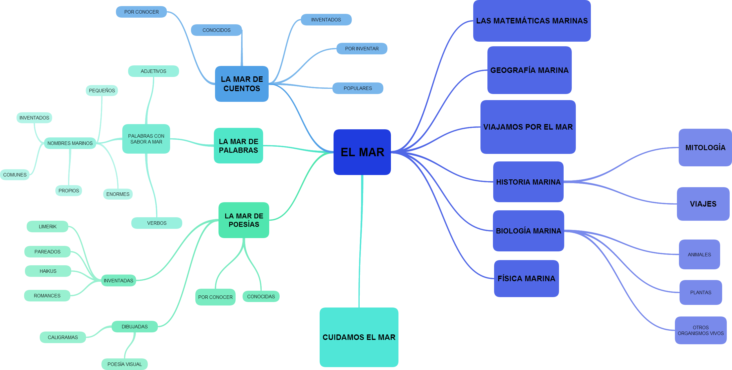 PROYECTO: "EL MAR, LA MAR"OBJETIVOS GENERALES:-Utilizar la de la web como recurso didáctico para encontrar y compartir material didáctico.-Fomentar la creatividad dentro del aula a través de la expresión escrita y plástica.-Utilizar el tema del proyecto para realizar actividades relacionadas con todas las áreas de aprendizaje.-Elaborar secuencias didácticas relacionadas con las diferentes áreas y el tema del proyecto.-Establecer relaciones de colaboración on line entre el profesorado del Centro a partir del proyecto para facilitar la utilización de diferentes recursos TIC: Drive, Exam Time , Blogs, mapas conceptuales...-Fomentar y dar a conocer, al profesorado y alumnado, las herramientas 2.0 disponibles en la red para la creación y elaboración de materiales y el aprendizaje digital.-Utilizar el blog del proyecto para compartir el trabajo realizado por l@s alumn@s del Centro y el profesorado.CONTENIDOS. La web 2.0. Expresión de la creatividad: escritura creativa y plástica.. El mar y las áreas de aprendizaje.. Secuencias didácticas relacionadas con todas las áreas.. Utilización de recursos TICEL BLOG DEL PROYECTO: "LA MAR DE MARES"EJEMPLO DE PROYECTO DE ESCRITURA CREATIVA: "PALABRAS AZULES"
