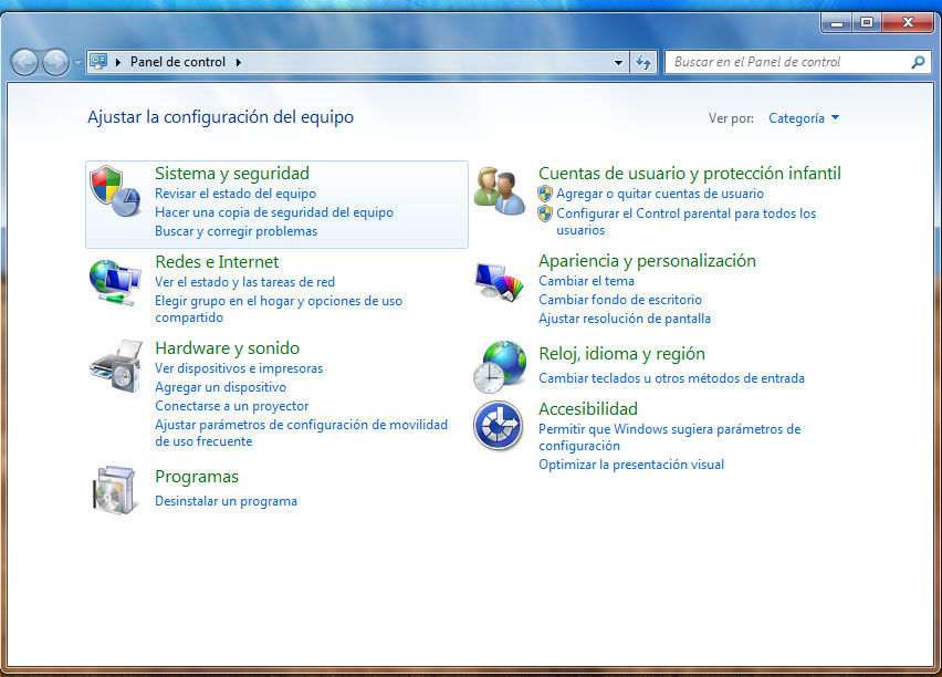 No se necesita ningún tipo de software, simplemente lo haremos con herramientas del mismo SO. >> Clic en inicio y nos vamos a Panel de control >>Una vez aquí, damos clic en Sistema y seguridad