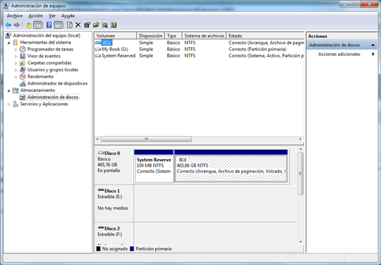 Pasos para crear particiones en Windows 7 cuando ya está instalado el sistema