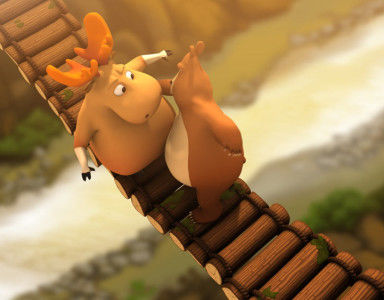Este cortometraje trata de cuatro animalitos tratando de cruzar un puente, pero el puente es muy angosto y los dos animales que aparecen en un principio son muy grandes, por esa razón no caben y ninguno de los dos se pone de acuerdo en ceder el lugar así que empiezan a pelear entre ellos.
