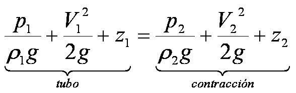 La siguiente ecuación conocida como ecuación de Bernoulli consta de estos mismos términos.v2p/2 + p + pgz = constantedonde:v= velocidad del fluido en la sección consideradap= densidad del flujop= presión a lo largo de la línea de corrienteg= aceleración gravitaríaz= altura en la dirección de la gravedad desde una cota de referencia Para aplicar la ecuación se deben realizar los siguientes supuestos:Viscosidad ( fricción interna) = o es decir, se considera que la línea de corriente sobre la cual se aplica se encuentra en una zona no viscosa del fluido.Caudal constanteFlujo incompresible, donde p es constanteLa ecuación se aplica a lo largo de una línea de corriente o en un flujo rotacionalLa ecuación se aplica a lo largo de una línea de corriente o en un flujo rotacional