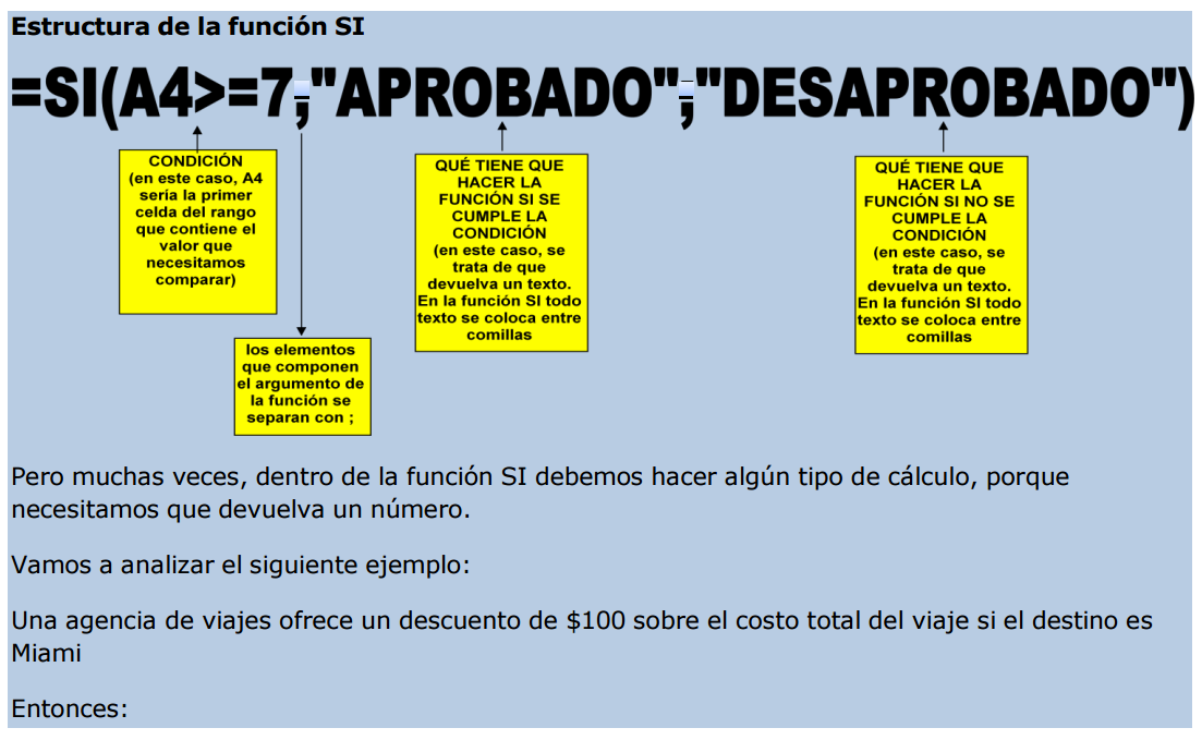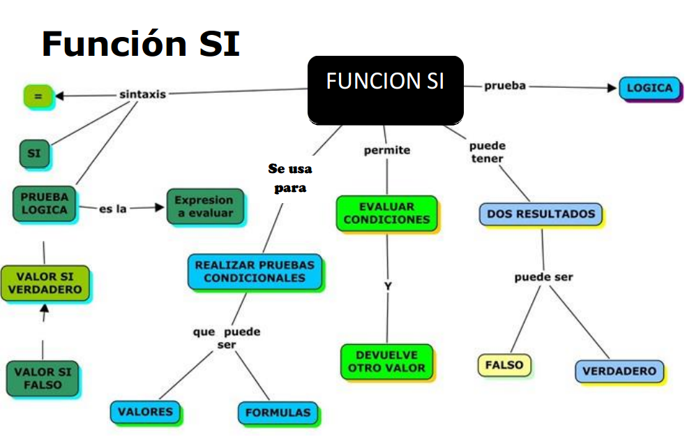 Función SI: Se usa para realizar pruebas condicionales, evaluar condiciones, puede tener resultados falsos o verdaderos,
