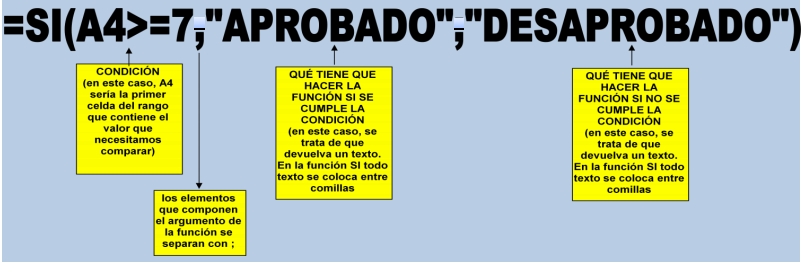 Función SI Es una función lógica que implica condiciones. Frente a una situación dada aparecen dos alternativas posibles: Si se cumple una condición, la función devuelve algún dato o palabra. Si no se cumple una condición, la función devuelve algún dato distinto.