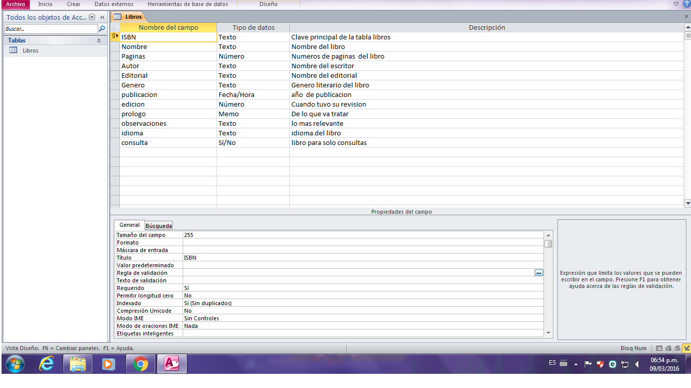 evidencia creacion tabla del libro