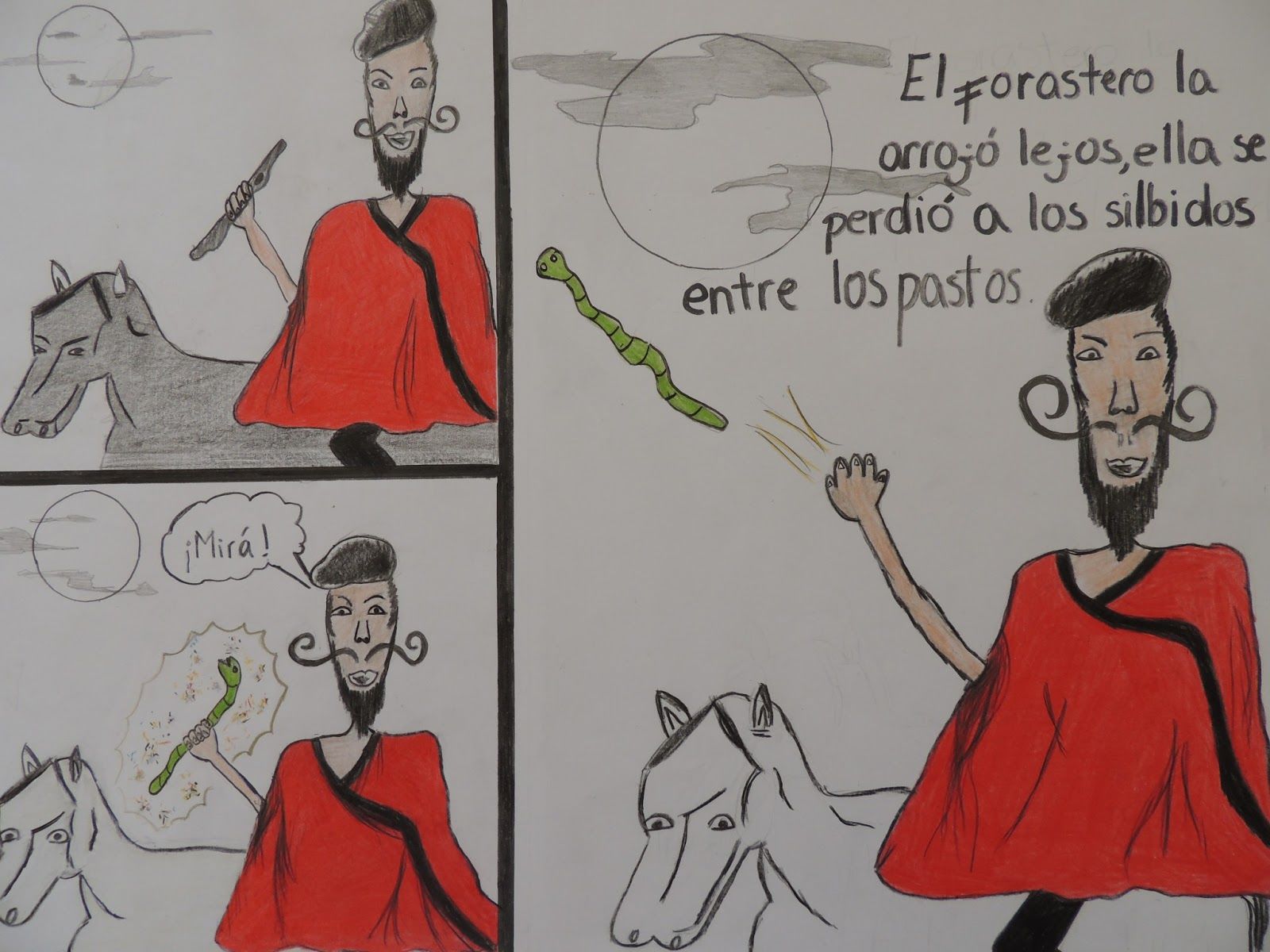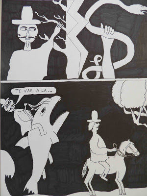 Su caballo “negro viejo” en “tordillo blanco como leche” Transforma una rama de tala en víbora; Transforma su dedo pulgar en encendedor Su caballo en toro cimarrón El toro en bagre.