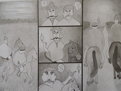 1. Introducción: Presentación de personajes; ubicación y los ofrecimientos del extraño.2. Desarrollo: Las pruebas del hombre de poncho rojo.3. Desenlace: La frustración del hombre de poncho rojo y el abandono.