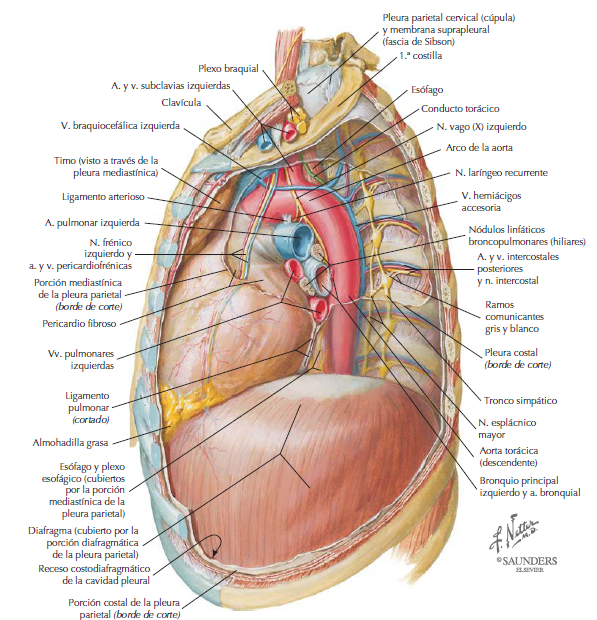 Esta cara se orienta hacia arriba y a la izquierda. Es muy convexa y determina una profunda huella en el pulmón izquierdo. Corresponde casi en su totalidad al ventrículo izquierdo; la parte alta, muy reducida, está formada por la aurícula y la orejuela izquierdas, separadas del ventrículo por el surco coronario. La transición entre esta cara y las otras caras del corazón se hace de forma gradual, por lo que no es posible distinguir bordes izquierdos como hacen algunos autores clásicos.