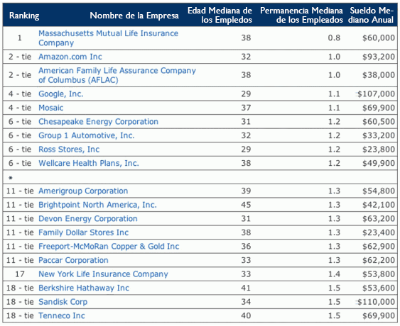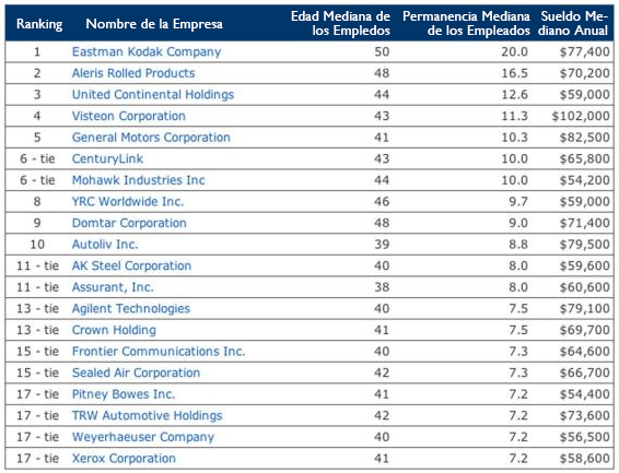 Según un estudio de PayScale llevado a cabo entre las empresas que forman parte del selecto grupo de las Fortune 500, las empresas con las tasas de retención de empleados más altas son aquellas en las que la edad mediana (y media) de los empleados es más alta.