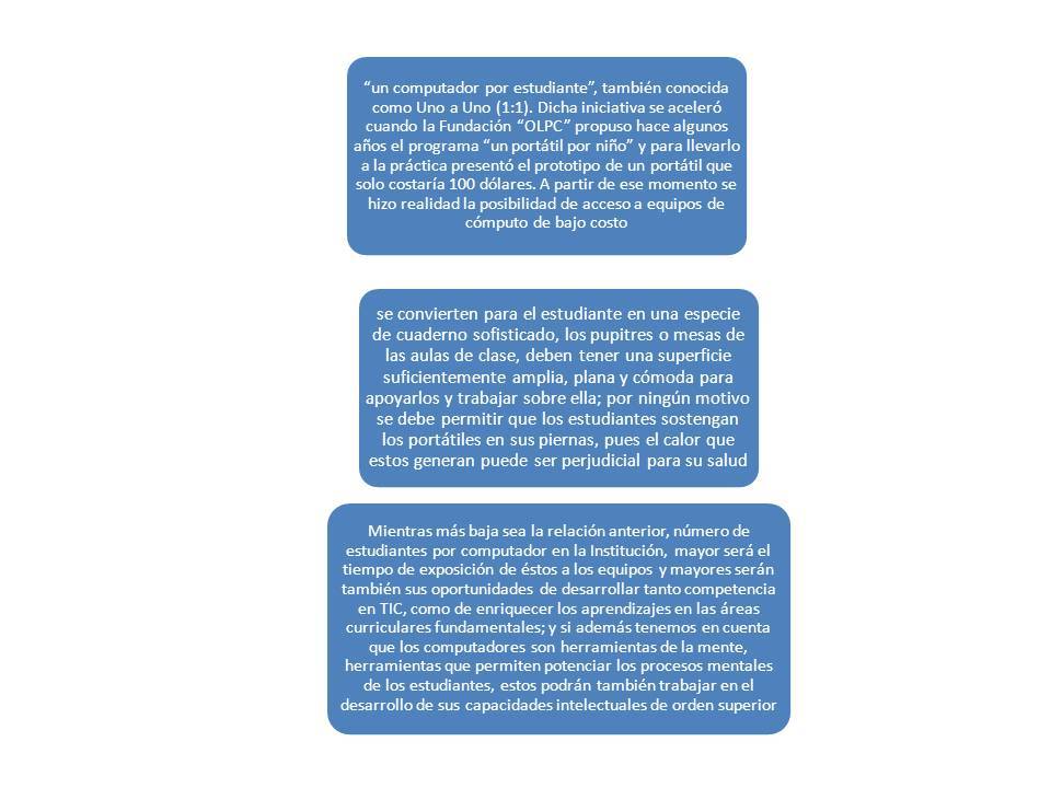 opción de dotar a un alumno “un portátil por niño” yrecomendaciones sobre las computadoras que deben existir en un salón de clases