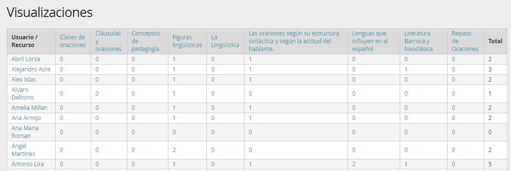 Adicionalmente, también puedes monitorizar las visualizaciones de todo tipo de recursos y cursos y exportar esta información a un archivo CSV.