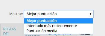 Existen opciones adicionales para ordenar tus resultados según mejores puntuaciones, puntuaciones medias o fecha en la que han sido realizados.