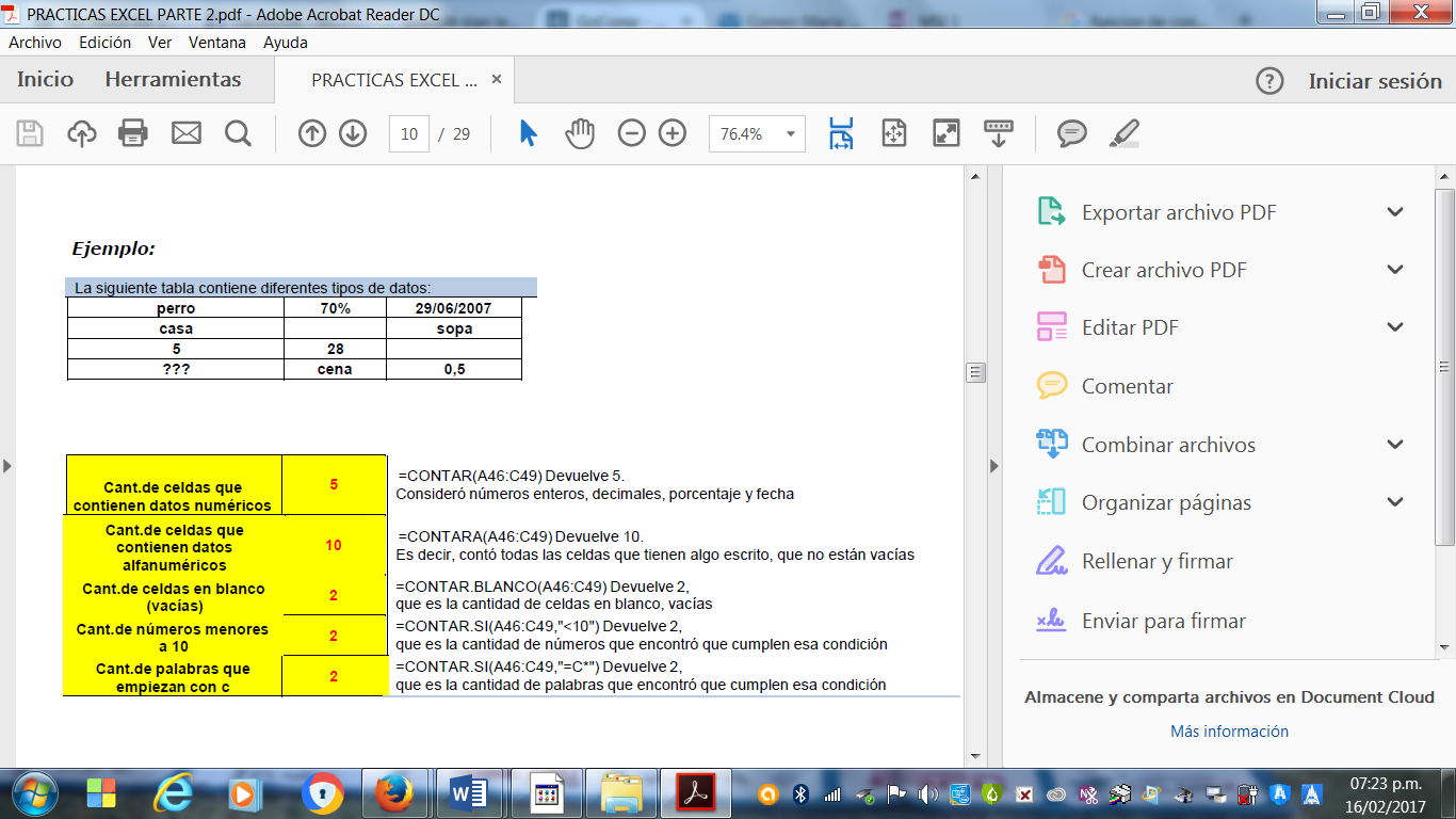 se encuentran un grupo de funciones para contar datos, en si la cantidad de celdas pero hay diversas funciones:1) para las celdas que contienen datos numéricos.
