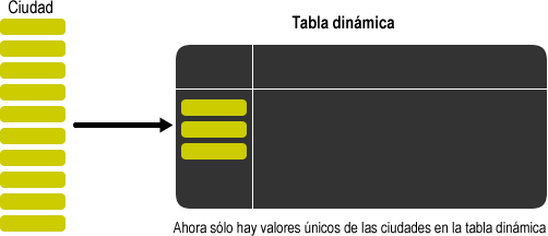 Lo primero que debemos hacer es especificar los campos de nuestra tabla de datos que vamos a comparar. Elegimos las ciudades como las filas de nuestra tabla dinámica: