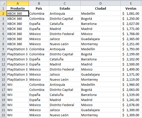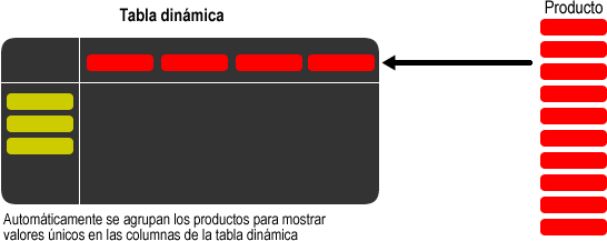 Las tablas dinámicas permiten resumir y analizar rápidamente y fácilmente en grandes cantidades.Las tablas dinámicas en Excel permiten agrupar datos en una gran cantidad de maneras diferentes para poder obtener la información que necesitamos. En esta ocasión explicaré el funcionamiento básico de una tabla dinámica.Supongamos que tienes una tabla de datos que contiene mucha información sobre las ventas de la compañía entre las cuales se encuentra una columna con los productos de la empresa, también la ciudad donde se vende y las ventas correspondientes para cada ciudad.