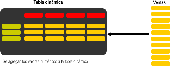 PARTES DE UNA TABLA DINAMICA:Estas áreas denotan cada una de las partes de una tabla dinámica.