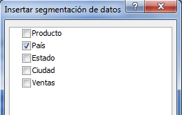Excel mostrará el cuadro de diálogo Insertar segmentación de datos.