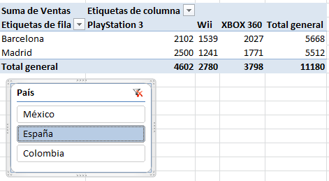Para filtrar la información de la tabla dinámica es suficiente con hacer clic sobre cualquiera de las opciones del filtro.