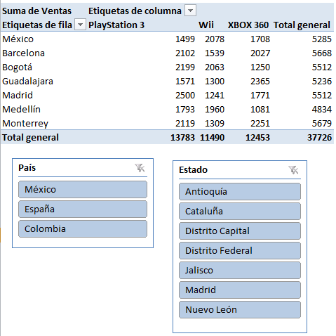 Excel ajustará la información de la tabla dinámica de acuerdo a las opciones seleccionadas. Para mostrar de nuevo toda la información puedes hacer clic en el botón Borrar filtro que se encuentra en la esquina superior derecha de cada panel.