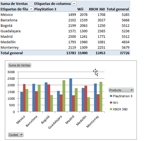 Así tendrás un reporte que compara las ciudades y los productos y para cada combinación obtendrás el total de ventas. Lo más importante que quiero transmitir con este artículo es que las tablas dinámicas te permiten elegir entre todas las columnas de una tabla de datos y hacer comparaciones entre ellas para poder realizar un buen análisis de la información.