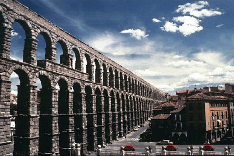 Els aqueductes: es una construccions romanes per portar aigua a les ciutats per ex: el aqueducta de segovia.