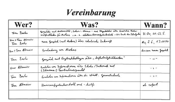 Kurz nach der Versendung der blauen Briefe hat Markus’ Klassenlehrerin Frau Berler seine Eltern zu einem Gespräch in der Schule eingeladen.