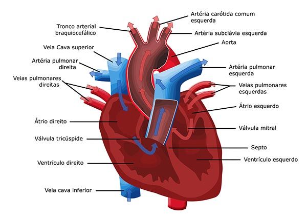 O coração é um órgão do sistema cardiovascular que se localiza na caixa torácica, entre os pulmões. Possui a função de bombear o sangue através dos vasos sanguíneos para todo o corpo.