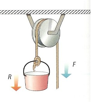 En aquesta sistema de politges...... si el pes del cubell d'aigua són 100 N.... quina força hauré d'aplicar