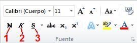 De la opciones que se muestran en la imagen, ¿Cuál es la que te permite poner un texto en Cursivas?