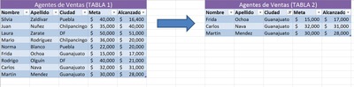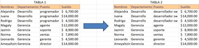 ¿Qué herramienta de Excel se ocupó en la Tabla 1 para que quedará como se ilustra en la Tabla 2?