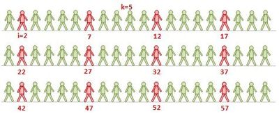 Se elige algún punto de partida y luego tiende a seleccionarse a cada k-ésimo (por ejemplo, cada quincuagésimo) elemento en la población.