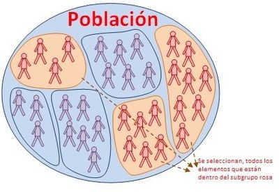 Se divide el área de la población en secciones y luego se selecciona (aleatoriamente) a una (s) de éstas, para finalmente obtener datos de todos sus elementos