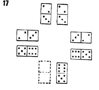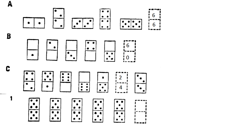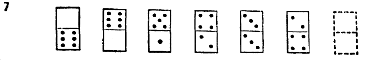 Cada recuadro representa un grupo de fichas de domino. El número de puntos en cada mitad de la ficha puede variar de 0 a 6