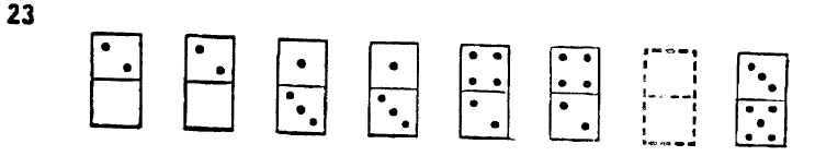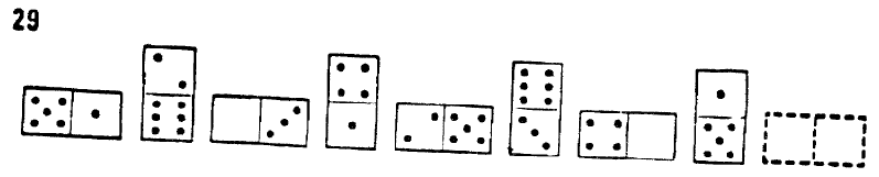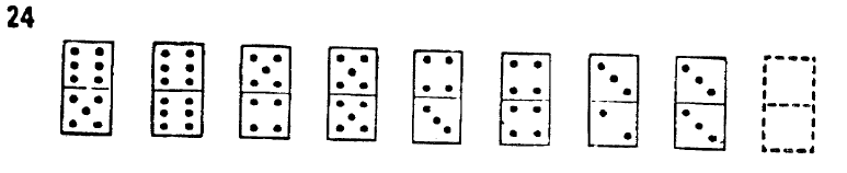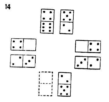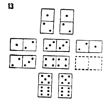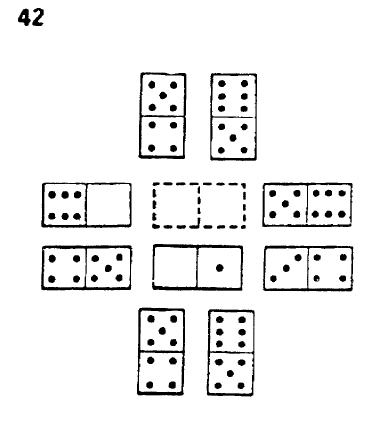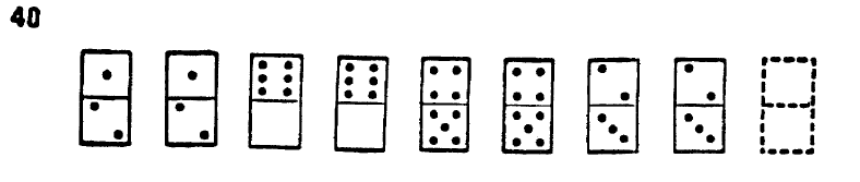 Each square represent a set of domino tokens. The number of point in each half of the token can be vary from 0 to 6.