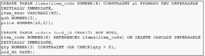 SQL> CREATE GLOBAL TEMPORARY TABLE report_work_area (startdate DATE, enddate