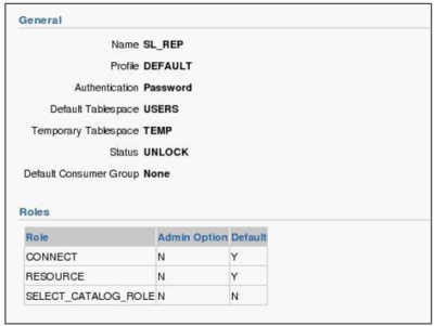 View the Exhibit and examine the privileges granted to the SL_REP user. The EMP table is