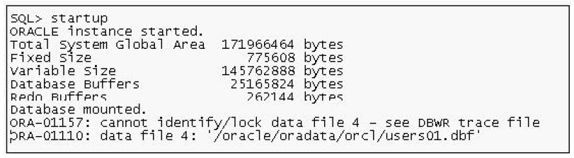 After performing a clean shut down of the database instance for maintenance, you mount the