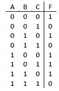 Sacar la función por Minterms de la siguiente tabla de verdad