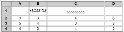 La fórmula =$C$3 se encuentra en la celda B1. Se copia y pega en C1. El resultado es: