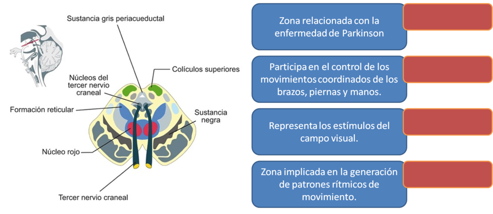 Indica si cada núcleo activa (+) o inhibe (-) al núcleo con el cual se conecta
