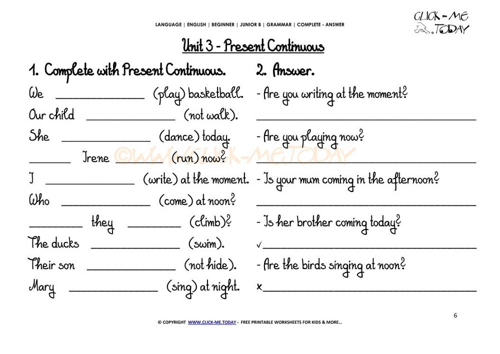 complete the sentences with the present continuous write the complete answers do not use contractions. exercise 2 is only short answers, 1 positive, 2 negative, 3 positive , 4 positive , 5 negative