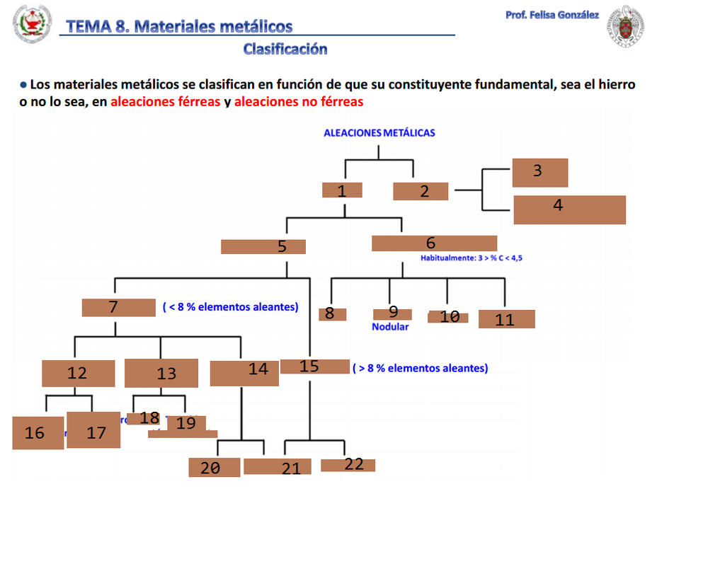 Aleaciones de cobre : Se clasifican, según el elemento aleante principal,