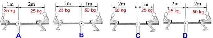 En cuál de las cuatro situaciones el columpio está en equilibrio: