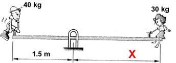 Indica cuánto tendrá que valer X para que el columpio esté en equilibrio.