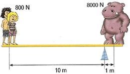 Indica si la palanca de la figura se encuentra en equilibrio o hacia donde se inclinará.