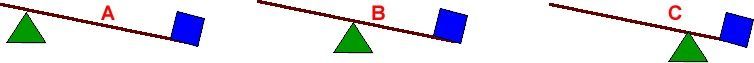 Indica cuál de estas tres palancas usarías para levantar el peso con la mínima fuerza posible