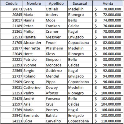 Teniendo en cuenta la base de datos adjunta analice que función se sería la más adecuada para determinar la siguiente información: