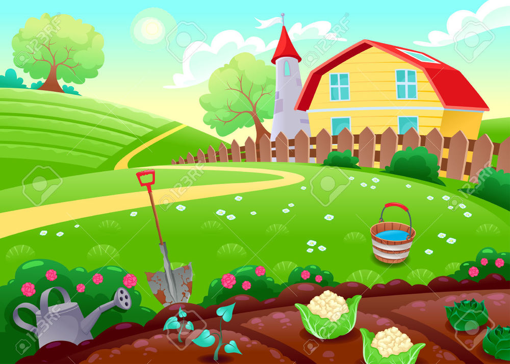 34340041 Funny Countryside Scenery With Vegetable Garden Cartoon Vector Illustration Stock Vector (image/jpeg)