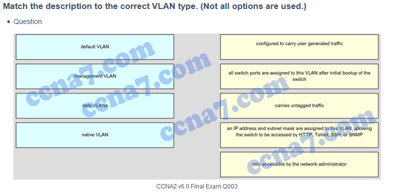 data VLANs, default VLAN, native VLAN, managment VLAN, 0